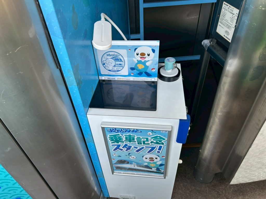外観はもちろん、車内の壁や座席、ドア周りに至るまでミジュマルのイラストがちりばめられており、「ここまで徹底しているのか」と思わず感心してしまう完成度。